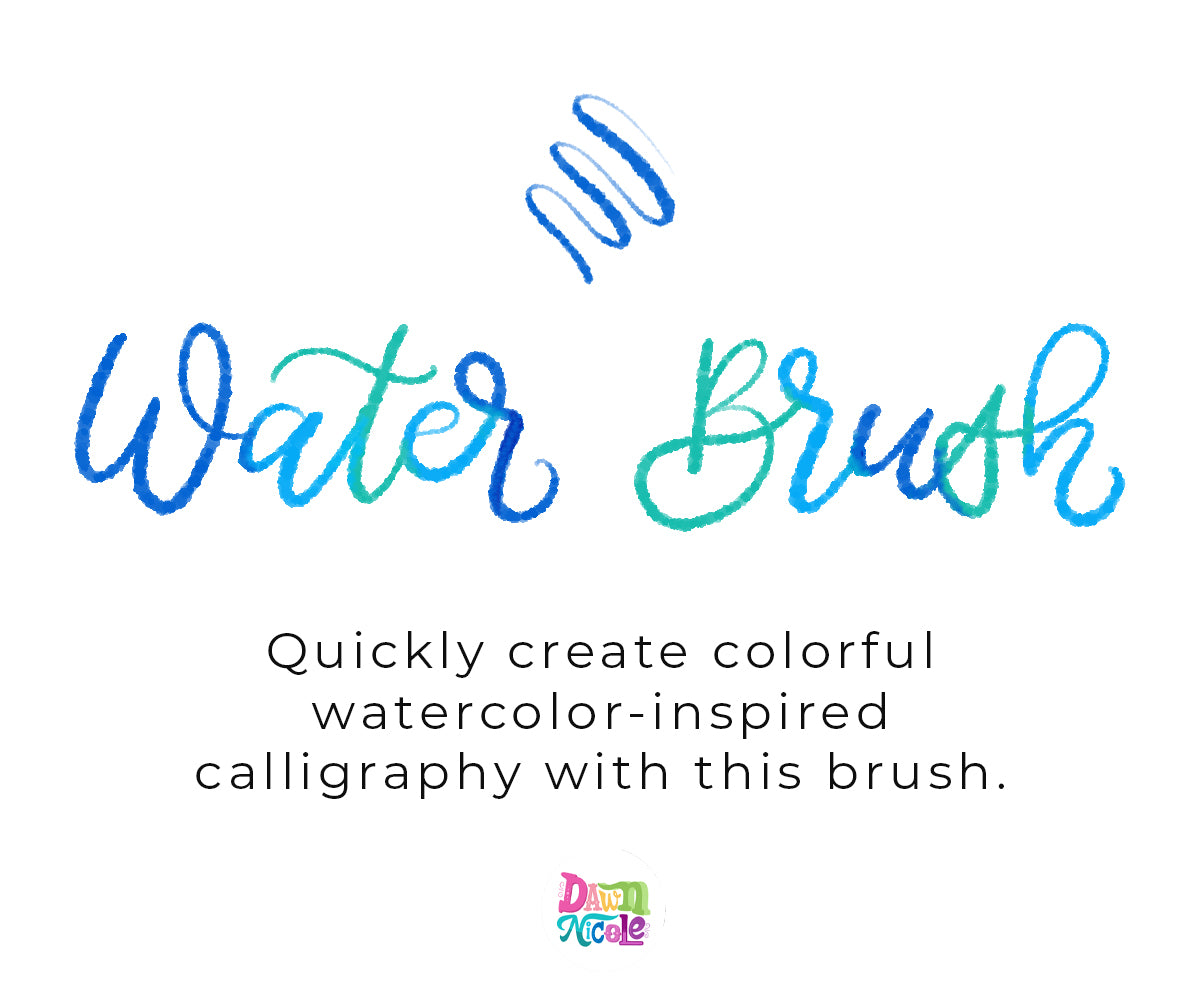 - Waterbrush. I use this brush to create all kinds of watercolor-style lettering.