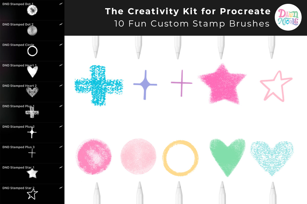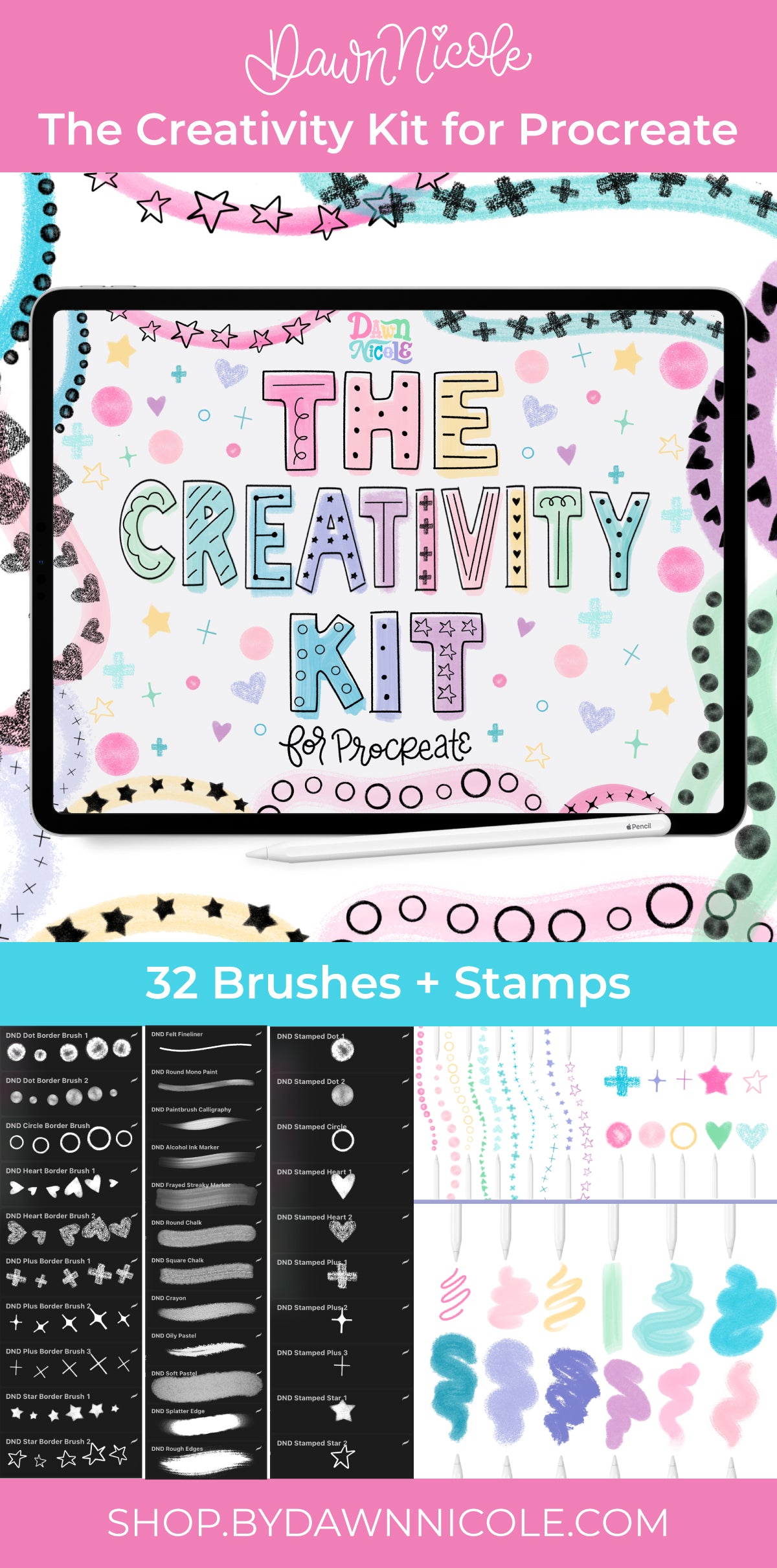 32 fun Procreate brushes designed to give your digital creations a realistic artsy vibe! Flip through the listing photos to learn more about this new brush kit.
