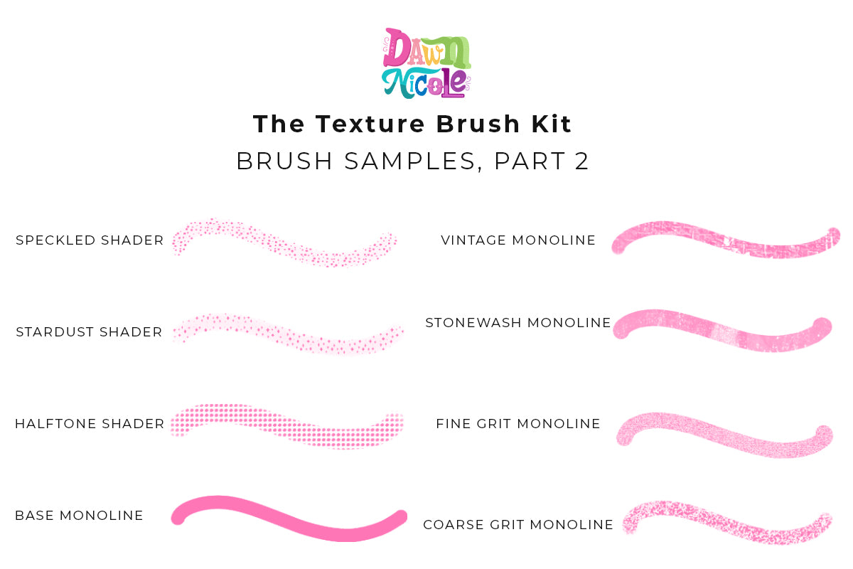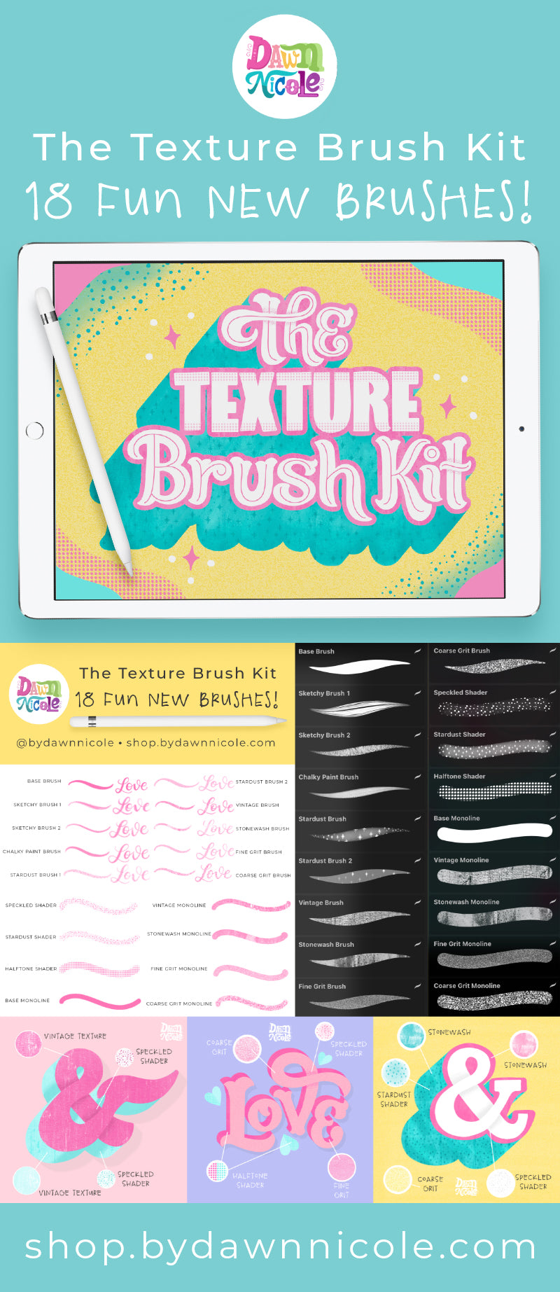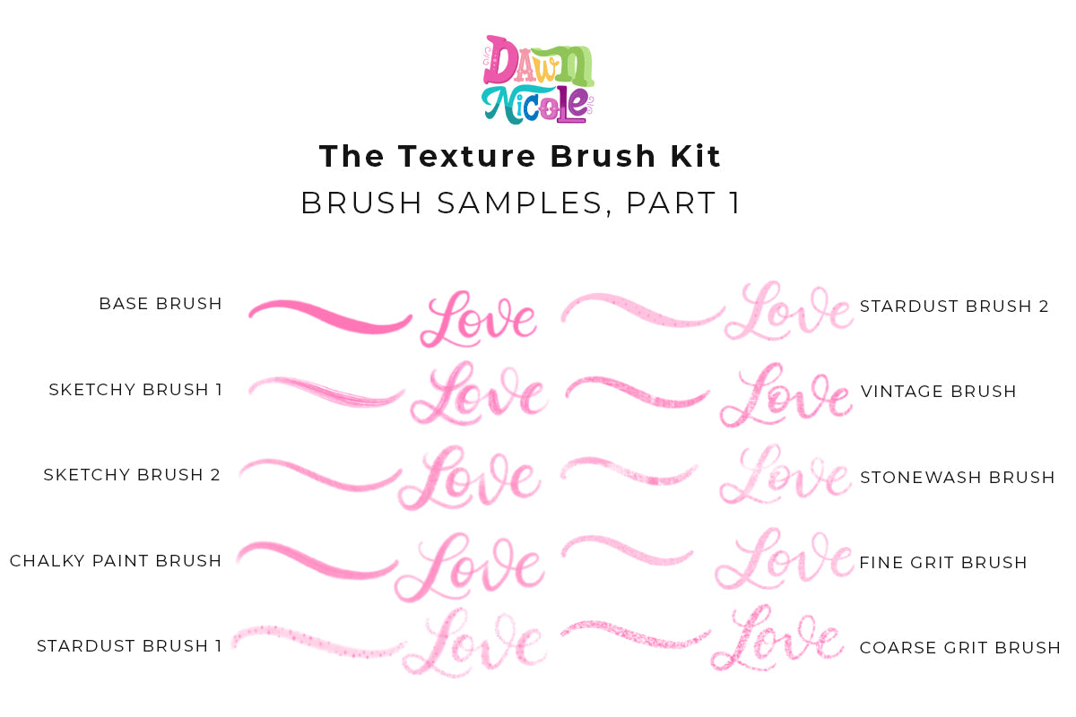 The key to using texture brushes is to learn to use clipping masks. They may sound intimidating, but they're super easy and fun! Be sure to read the PDF in your download to learn more about how to use them.