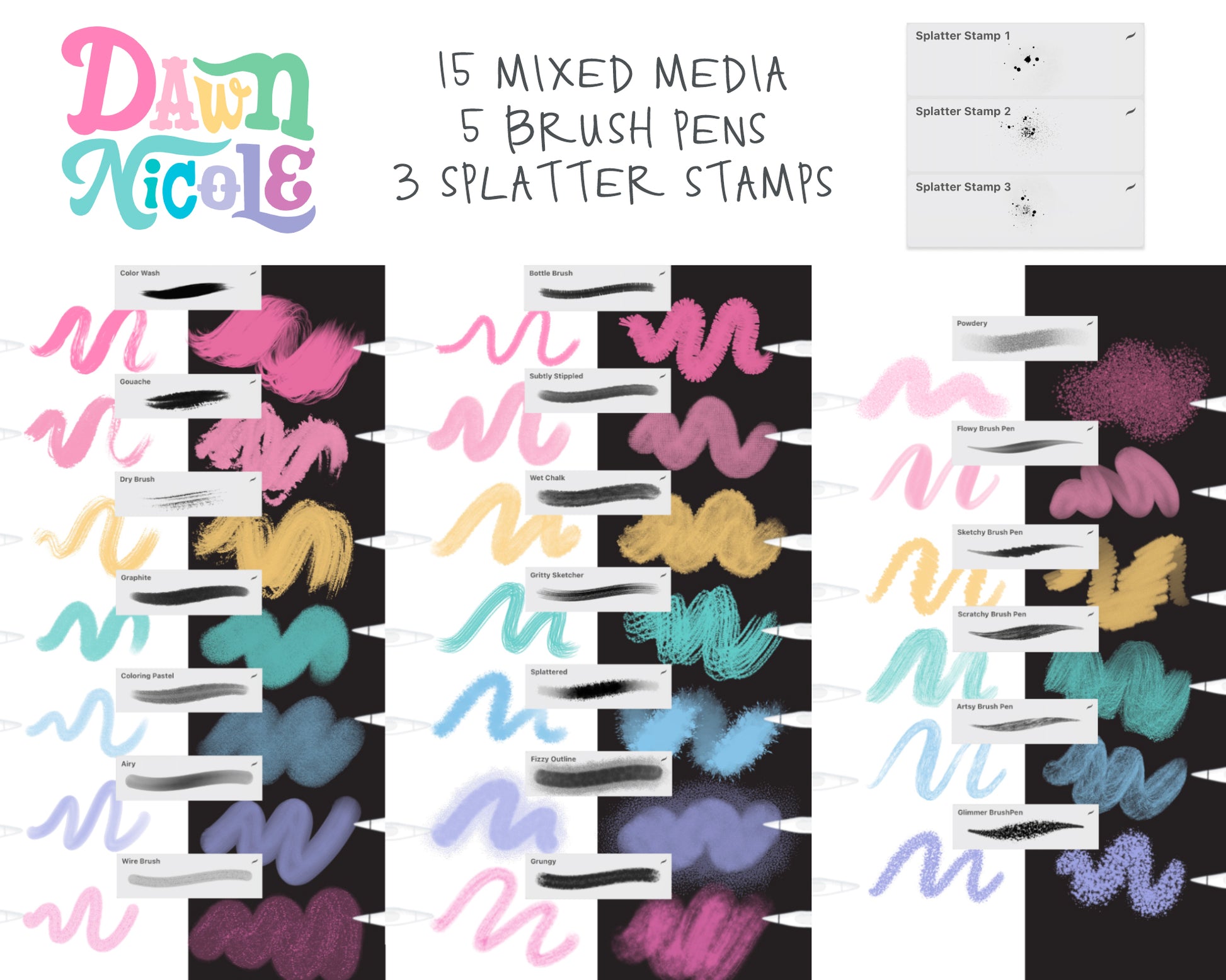 This is a digital download. No physical items will be shipped. These brushes ONLY work with Procreate and the iPad with Apple Pencil.