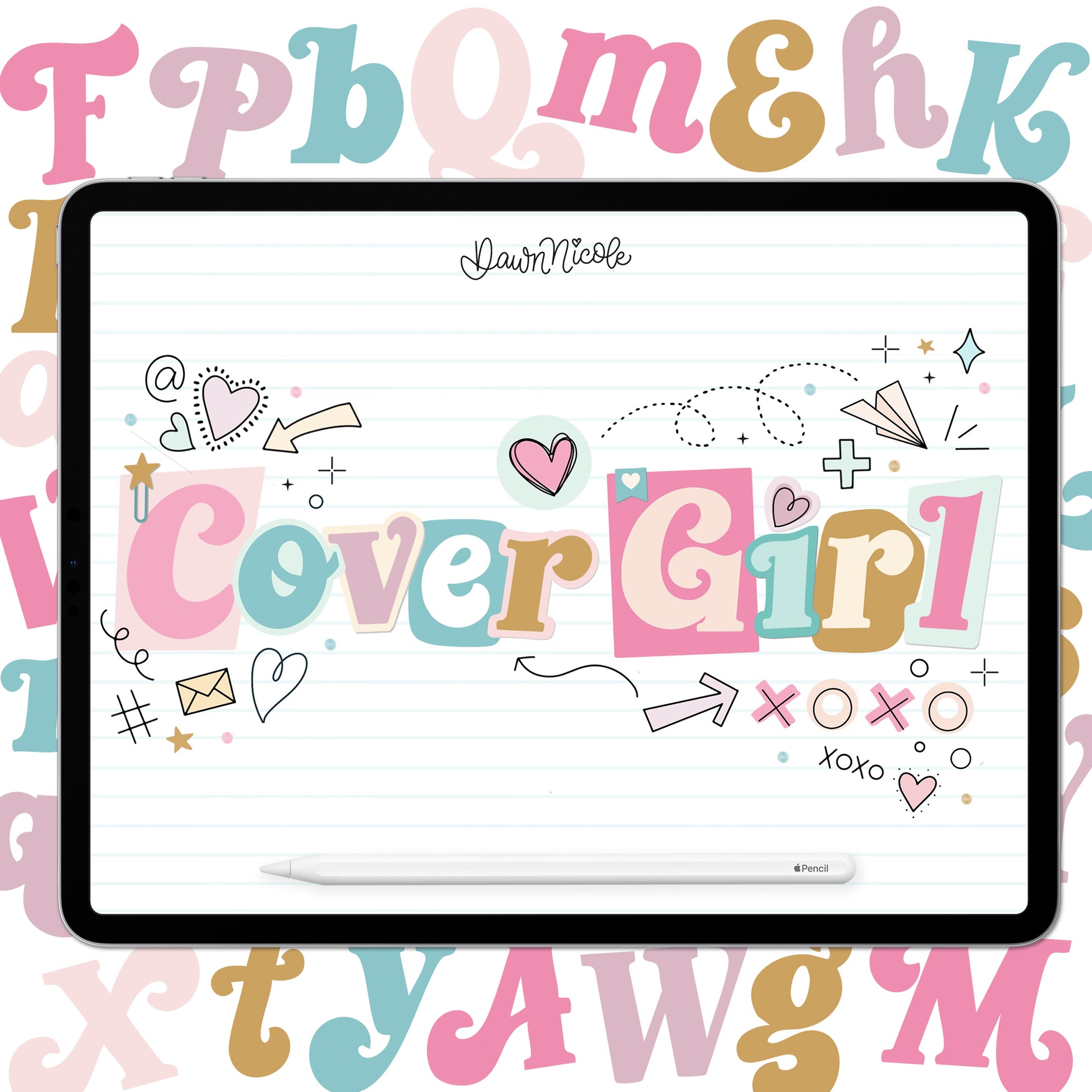 The Cover Girl Lettering Style workbook is a twelve-page PDF. The worksheets are also provided in a Procreate file for you to practice on your iPad. The May Lettering Style Challenge worksheet is a five-page PDF file.